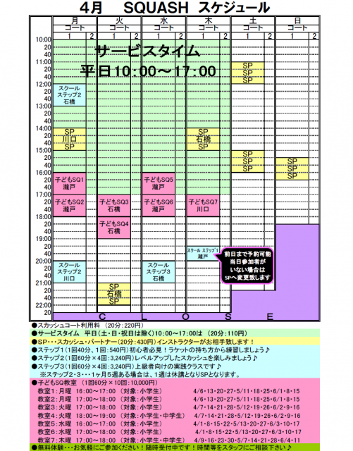 スクール(ステップ2・3)の申し込みは、前月の20日から開始となります。